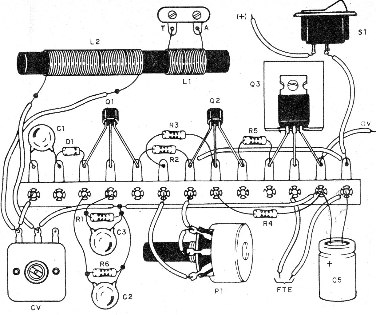 Como se trata de montaje didáctico sugerimos el uso de un puente de terminales, si bien una versión en matriz de contactos también puede ser adoptada.