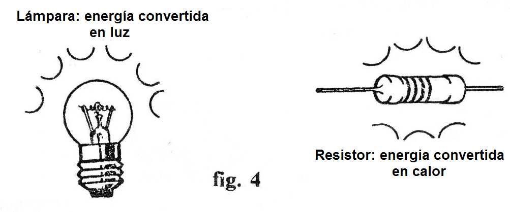 Para componentes como una lámpara o una resistencia esta potencia puede indicar también la cantidad de electricidad o energía eléctrica que él convierte en luz o calor (figura 4).