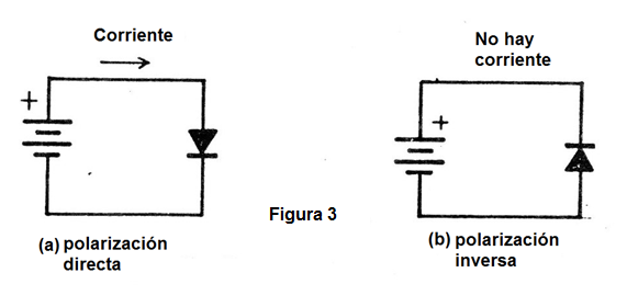 En la figura 3 mostramos cómo funciona un diodo semiconductor.