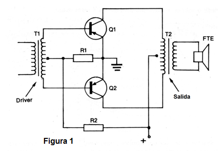 Tenemos dos tipos de circuitos típicos de salida de audio comúnmente encontrados en los aparatos transistorizados. El primer circuito se muestra en la figura 1 y utiliza transformadores miniatura, que se encuentran en radios de dos o cuatro pilas.