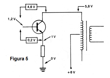 En la figura 5 tenemos los valores de las tensiones que deben ser encontradas típicamente en los terminales de los transistores de germanio.