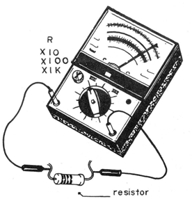 a) medida de resistencias: para medir una resistencia aisladamente, es decir, fuera del circuito, basta colocar las puntas de prueba del instrumento en sus extremos, como muestra la figura 2 y elegir una escala que dé una lectura en el medio de la misma. La lectura de aproximadamente medio de escala multiplicada en valor por el factor multiplicado en el selector permite la mayor precisión posible.