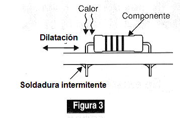 Estos defectos se originan normalmente por la elevación de la temperatura de componentes de potencia tales como resistores de hilo, transistores, diodos, circuitos integrados de potencia, etc.