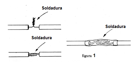 Utilice siempre soldadura y si el hilo está en el interior de un aparato haga uso de espagueti. El espagueti no es más que un pedazo de capa de hilo que envuelve la enmienda, como muestra la figura 1.