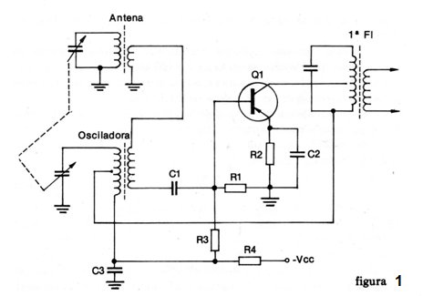 En la figura 1 tenemos un circuito mezclador como el encontrado en radios transistorizados para ondas medias y cortas, por lo tanto AM.