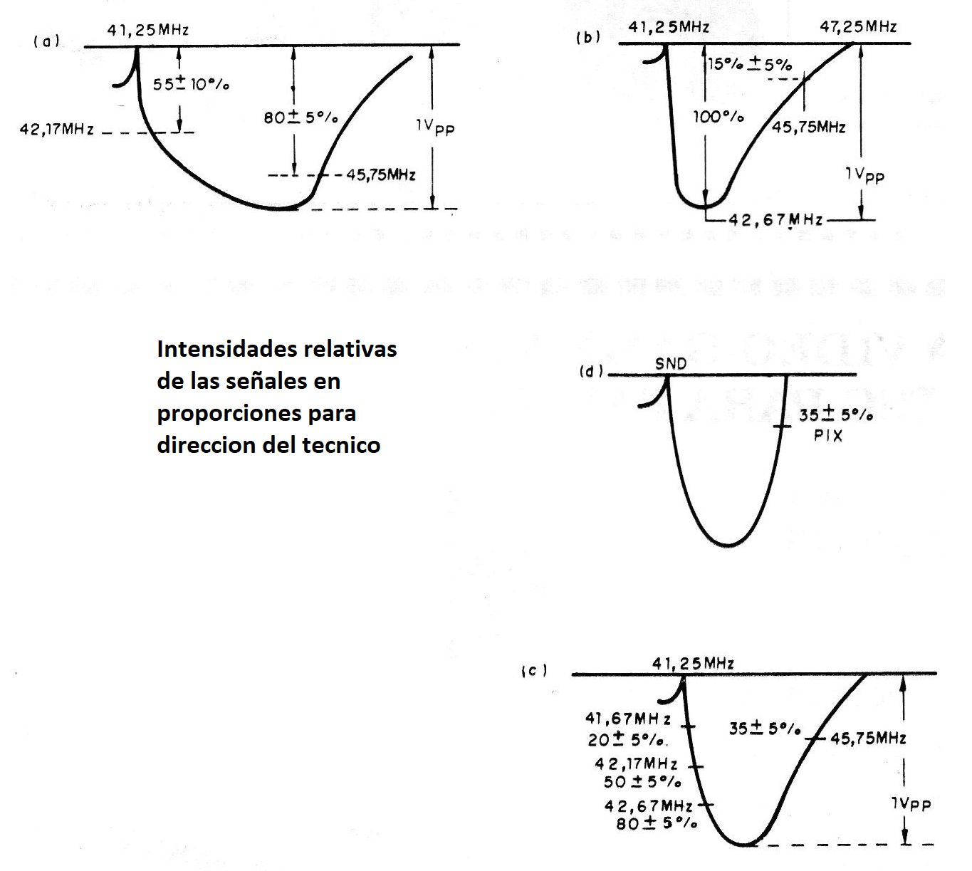 Vea que las curvas de respuesta deben ser similares tanto con televisores monocromáticos como en color, con la única diferencia de que la anchura de banda para los televisores de P & B es más estrecha.