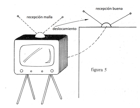 d) Recepción interna: la solución de problemas de recepción en lugares de señales débiles admite algunas soluciones interesantes. Si usted utiliza la antena interna para su FM y la recepción de su estación predilecta se hace con cierta dificultad, incluso con el cambio de posición de las varillas, a veces su desplazamiento a otro punto de la casa, incluso sólo de uno o dos metros, puede resolver. (figura 5)