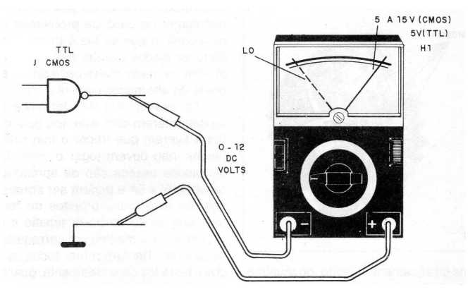 Sin duda, el multímetro es más un equipo que sirve en el análisis de determinados puntos de circuitos digitales. Con él podemos verificar si en una salida tenemos un nivel constante alto o bajo, como muestra la figura 1.