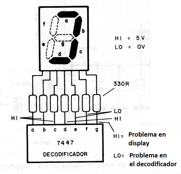 Este problema ya puede ser constatado cuando verificamos que en la salida del decodificador no existen los niveles lógicos que produzcan el encendido normal de un cierto número. En este caso debemos cambiar el integrado.