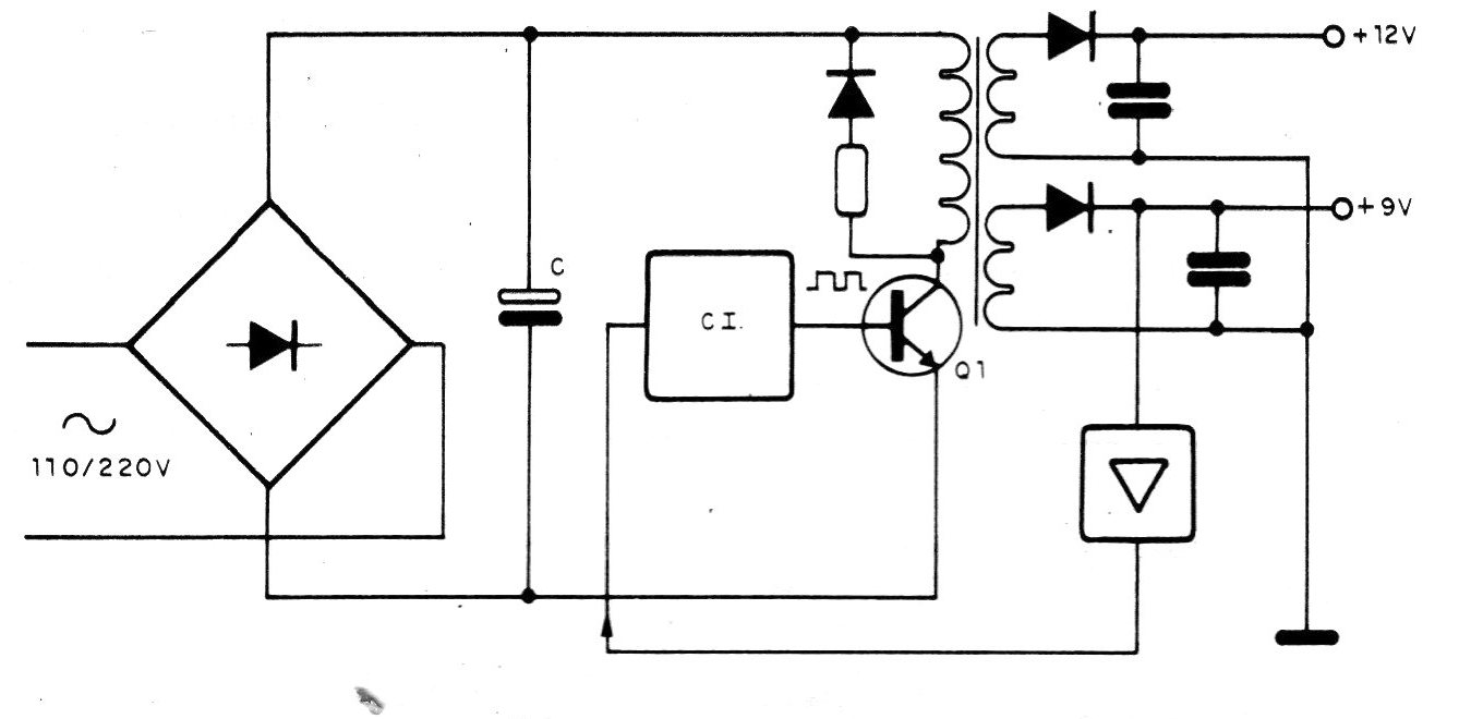 En estas fuentes vamos a encontrar dos tipos de reguladores: los convencionales o lineales como el mostrado en la figura 1 y un circuito conmutado como el mostrado en la figura 2.