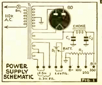 Esta fuente que se puede hacer con componentes de desecho se encuentra en documentación de 1943. La corriente depende del transformador, así como las tensiones que se pueden obtener. R1 es de alambre y su valor depende de la corriente máxima.