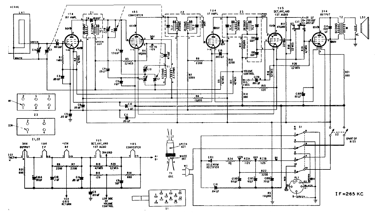 En aquella época los radios portátiles valvulados usaban dos baterías, una de baja tensión, normalmente, 1,5 V para los filamentos y otra de alta tensión, normalmente 67,5 V o 90 V para los circuitos de + B.
