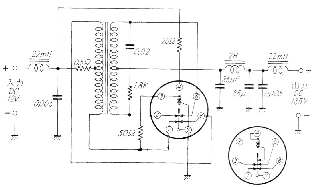 Este circuito de una documentación japonesa antigua muestra cómo se obtiene alta tensión para valvulados alimentados por la batería de un coche. En el caso, se utilizaba un vibrador mecánico, que aún se puede encontrar en casas especializadas en la recuperación de coches antiguos.