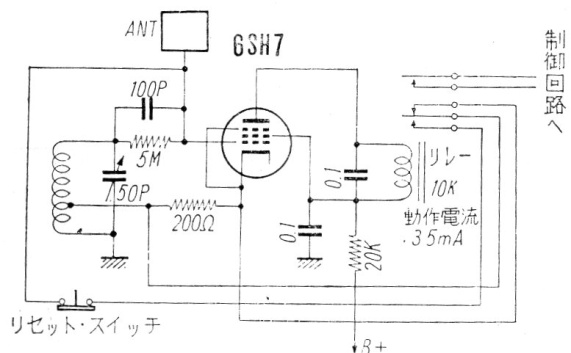 Encontramos este circuito de sensor de toque valvulado en una documentación japonesa de los años 60. El circuito utiliza una sola válvula y no incluye fuente de alimentación que debe tener aproximadamente 200 V. La bobina tiene aproximadamente 20 + 5 espiras de hilo 28 en un tubo de cartón 1 cm de diámetro.