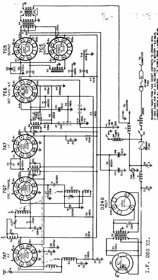 Este receptor de la propia fábrica de automóviles utilizaba un vibrador para obtener alta tensión en las válvulas. Los filamentos de las válvulas eran de 7 V, otra característica interesante de esta configuración de radio diferente.