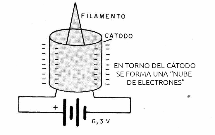 Al polarizar una rejilla o incluso el ánodo con una tensión positiva, se atraen electrones y se produce un haz. En condiciones normales de funcionamiento, en un tubo débil, los 6,3 V utilizados en la energía ya no pueden calentar el cátodo hasta el punto en que se produzca una buena liberación de electrones.