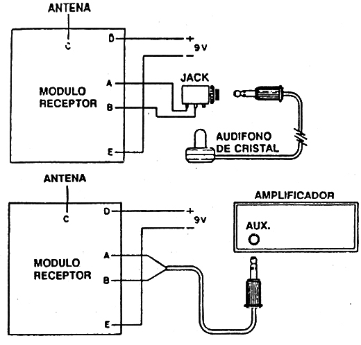 El auricular o amplificador se conecta al módulo receptor como se ve en la figura 8.
