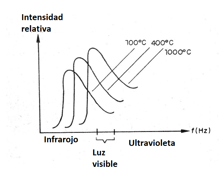 El circuito se basa en el hecho de que cualquier cuerpo que esté por encima de la temperatura absoluta cero (-273ºC) emite radiación infrarroja. La intensidad de la radiación será mayor cuanto más alta sea la temperatura, como se muestra en la figura 1.
