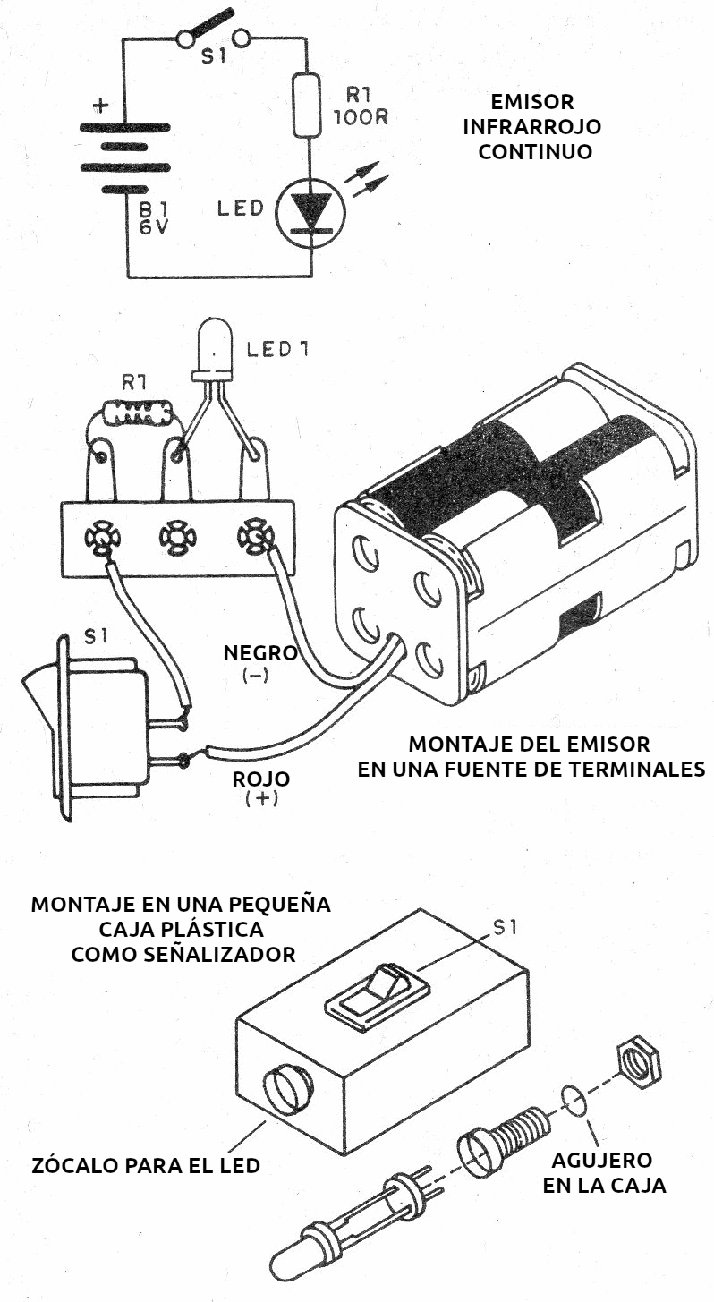 Para probar el aparato es conveniente tener una fuente de radiación infrarroja conocida. Esto se puede lograr con un LED infrarrojo en el montaje mostrado en la figura 12.