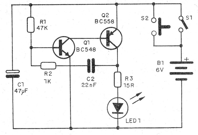 El emisor de LED se puede obtener de un control remoto roto o fuera de uso. Observe la polaridad del LED para que el circuito funcione correctamente. Apunte esta fuente de emisor al sensor localizador y vea si funciona. S1 debe cerrarse en esta función, porque vamos a detectar la radiación sin modulación.