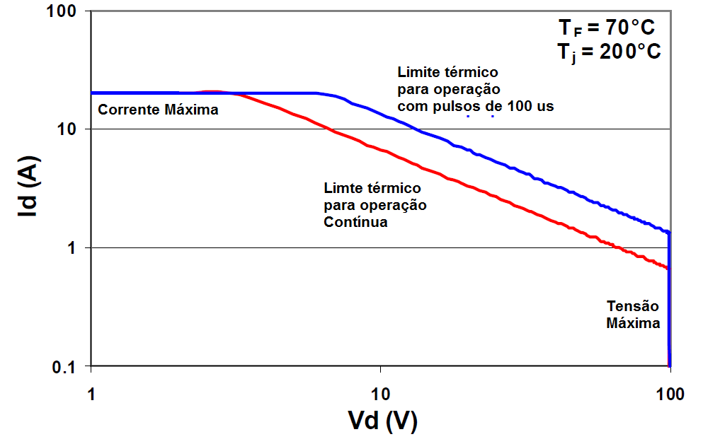 Esto puede llevar al menos advertido a pensar que si conectan este componente a una carga adecuada que recibe los 100 V y 15 A del transistor, tendrán una potencia disponible de 1 500 W (15 x 100). No es cierto, porque además del transistor sólo puede disipar 15 W, hay límites para ser respetados. El máximo de 15 A sólo está disponible en un cierto escala de tensión de funcionamiento del transistor.