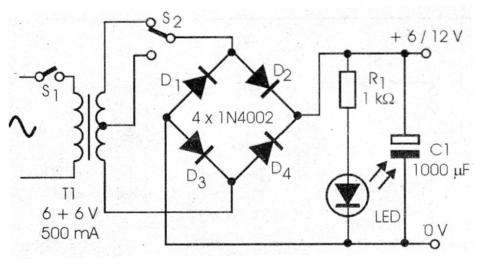 La mayoría de los proyectos electrónicos que involucran el uso de transistores y circuitos integrados necesitan tensiones de 6 y 12 V. Una fuente simple que proporcione estas tensiones es entonces algo que todo montador, proyectista o reparador de circuitos debe tener en su banco.