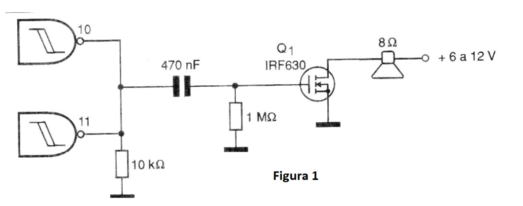 Combinando estas dos señales en las otras dos puertas del circuito integrado 4093, que funcionan como búfer o amplificadores digitales tenemos en la salida bips intervalados. Los bips son reproducidos por el transductor cerámico de alta impedancia conectado en los pines 10 y 11, que corresponden a la salida del circuito.