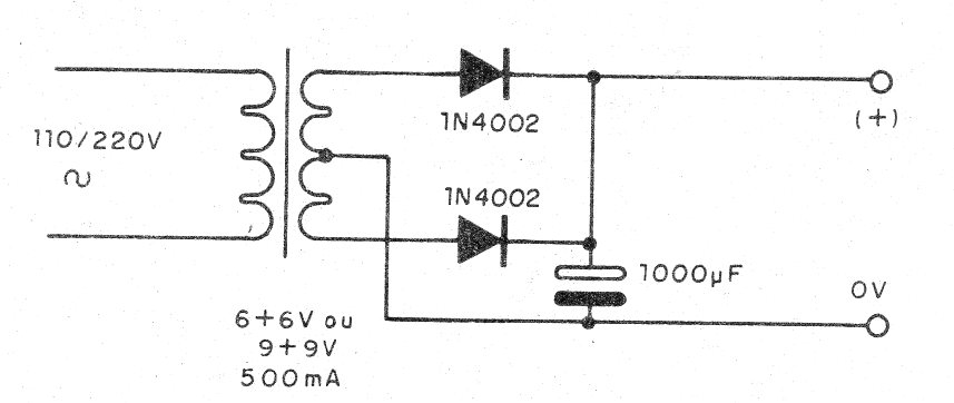 Los resistores son de 1/8 W con un 5% de tolerancia y el altavoz es del tipo pequeño de 4 a 8 ohms. En la figura 4 tenemos una fuente de alimentación para el circuito.
