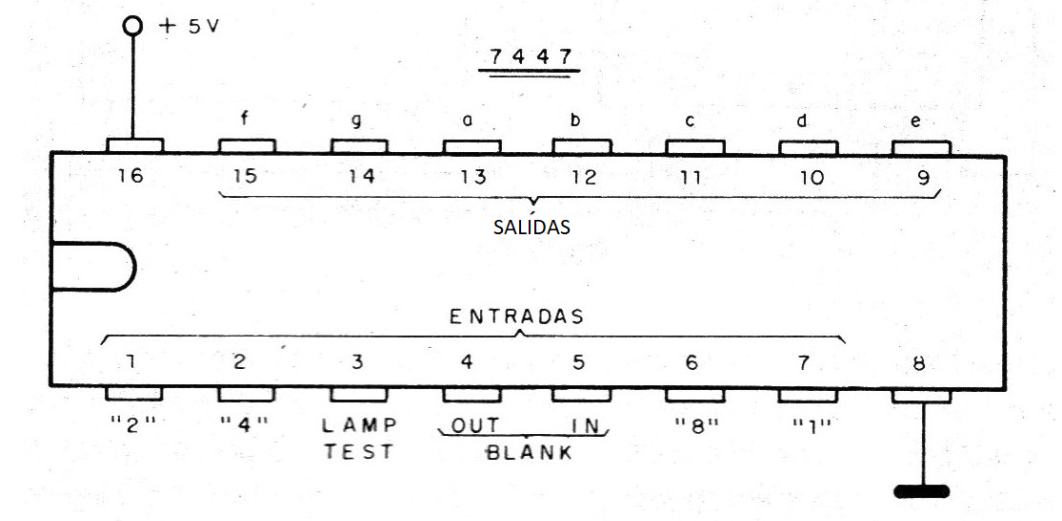 Esta entrada se debe utilizar junto con el siguiente integrado del contador. Cada integrado 7447 requiere una corriente de 43 mA para funcionar.
