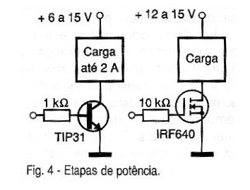 Con el transistor TIP31 podemos controlar cargas de hasta 2 amperios aproximadamente, y con Power-FETs las cargas pueden ser mayores dependiendo del transistor usado. También se pueden utilizar Darlingtons de potencia y SCR. Sin embargo, en el caso del SCR debe considerarse el aislamiento de la red de energía.