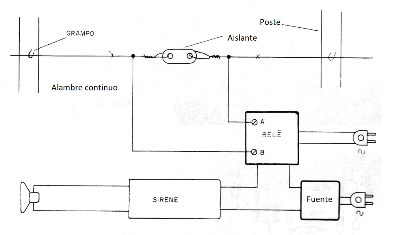 El circuito receptor reconoce constantemente esa señal mientras el sistema permanece encendido y la cerca se mantiene entera. Si hay una interrupción en cualquier punto, la señal desaparece y, por lo tanto, el receptor detecta esta ausencia disparando un relé.