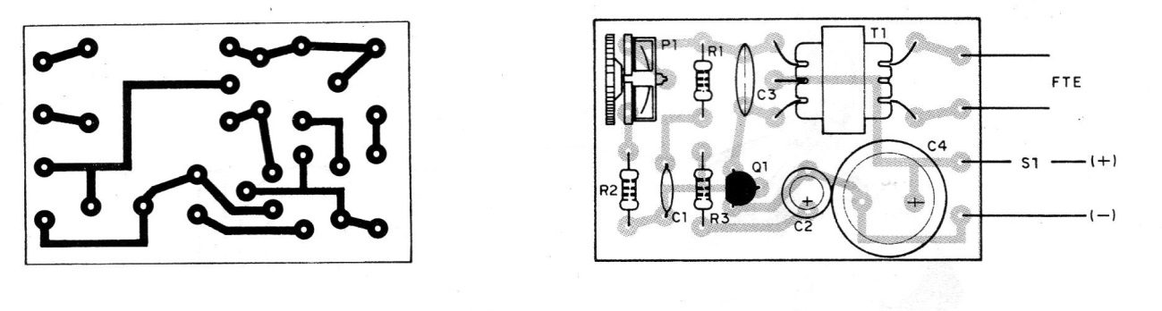 b) El transformador de salida puede ser de cualquier tipo para transistores, pero será conveniente tener este componente en las manos antes de hacer la placa, ya que los tipos disponibles varían mucho de tamaño. Tenga cuidado de no invertir su conexión.