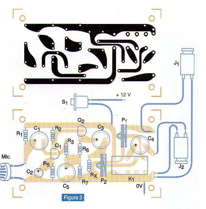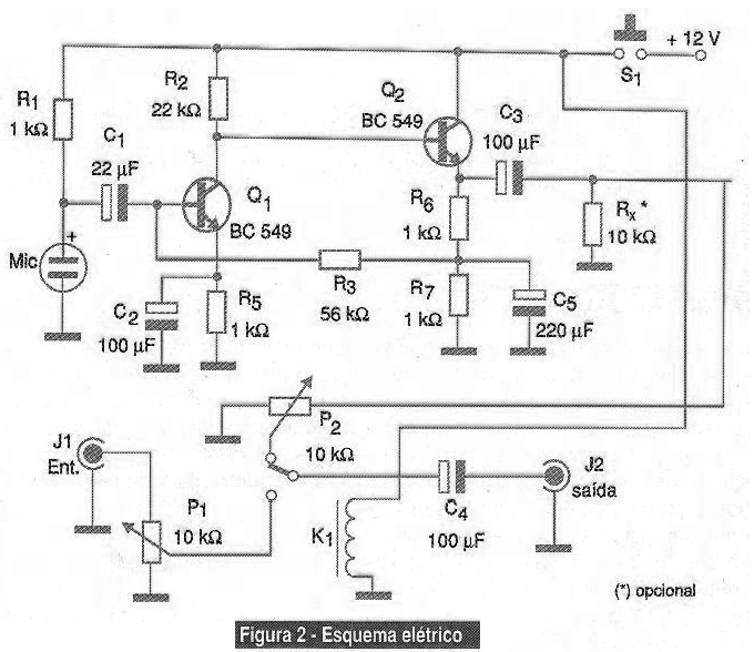 Como se trata de circuito de alta-ganancia, es necesario tomar el máximo cuidado para que no ocurra la captación de zumbidos. El montaje debe realizarse en caja blindada y los cables de audio deben ser blindados.