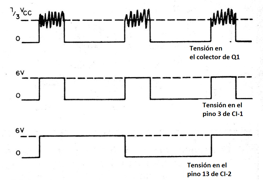En la figura 1 tenemos formas de onda obtenidas en las diversas etapas del circuito.