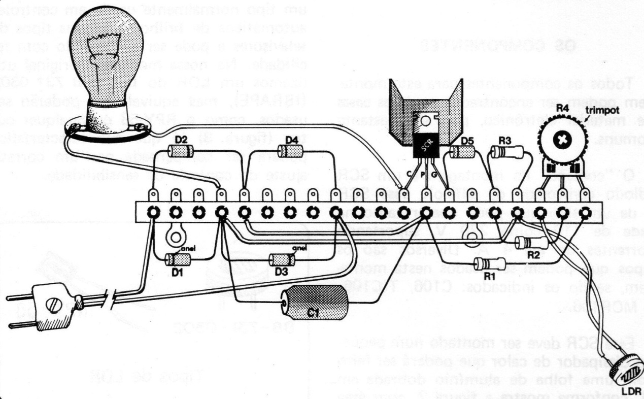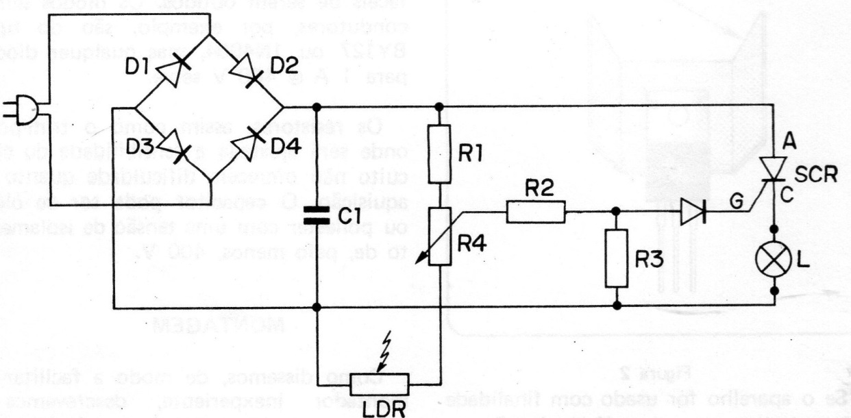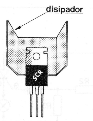Diversos son los tipos que se pueden utilizar en este montaje, siendo los indicados: C106, TIC106, y MCR106. Este SCR debe ser montado en un pequeño disipador de calor que podrá ser hecho con una hoja de aluminio doblada en U, como muestra la figura 2, con área de cerca de 100 cm2º.