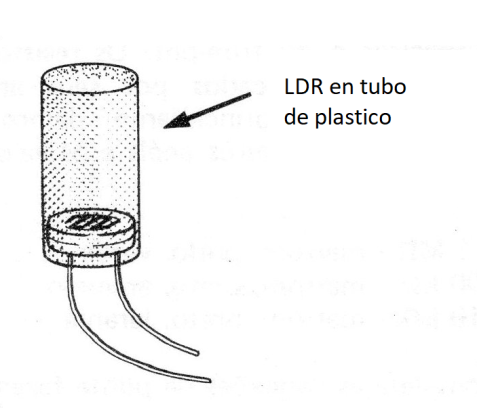 El LDR debe colocarse, por ejemplo, en un pequeño tubo, para recibir iluminación ambiental de una sola dirección (figura 7).