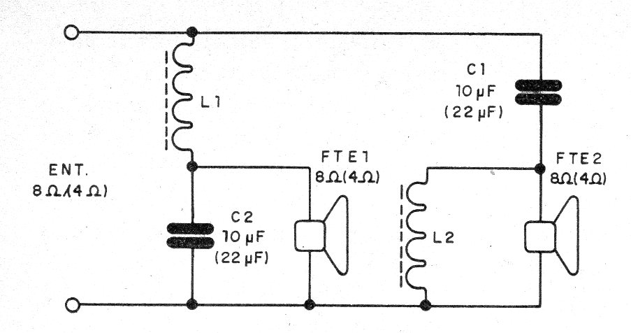 El divisor de frecuencias que describimos tiene una buena separación y excelente calidad. Los inductores deben ser enrollados por los montadores y los capacitores deben ser del tipo despolarizado.