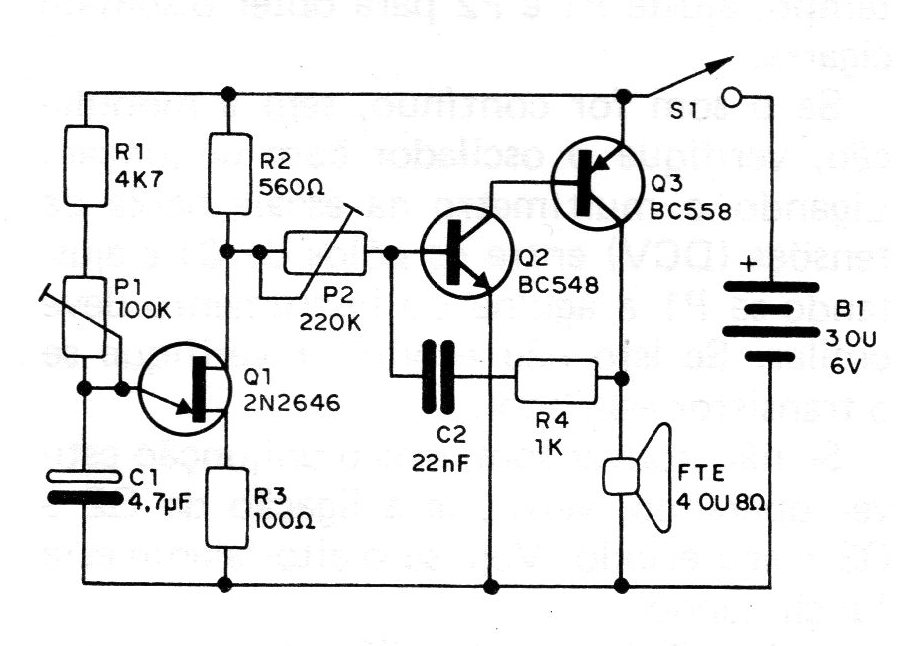 Si no hay sonido, pero el unijuntura está funcionando, compruebe la conexión de Q2 y Q3 y su estado. Compruebe si el altavoz está funcionando.