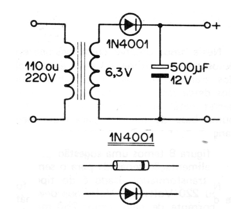 El transformador utilizado es del tipo de 110 o 220 Volts © 6 Volts que debe tener una corriente de al menos 250 mA de secundario.