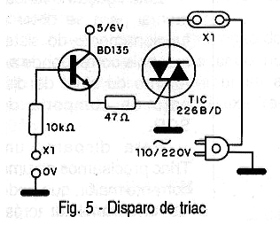Este componente debe estar dotado de un buen radiador de calor, principalmente si opera con cargas de potencias elevadas. Observe también que, en este caso, tenemos un punto común para la tierra del circuito digital y para la red de energía, sin el cual no hay retorno a la corriente de disparo y no funciona.