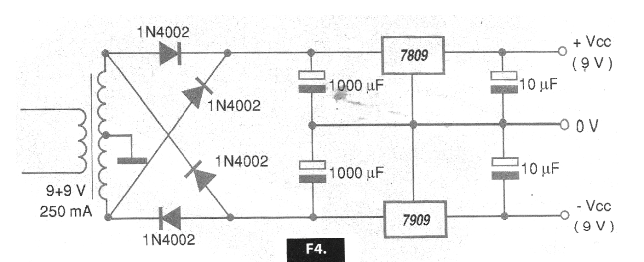 Se recomienda el uso de resistores de película metálica para mayor estabilidad y para que los ruidos no se introduzcan en el circuito. En la figura 4 tenemos una sugerencia de fuente simétrica para la alimentación de ese circuito.