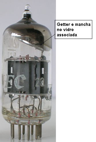 En el proceso de fabricación de las válvulas, al hacer el vacío en el interior pueden quedar gases remanentes, como oxígeno que atacar los electrodos y el filamento cuando se calienta. Para evitar este problema se añade en el interior de la válvula un pequeño anillo de metal a base de zirconio y bario cuya finalidad es absorber el oxígeno cuando la válvula se conecta por primera vez. Este anillo, denominado "getter", provoca un plateado del vidrio al evaporarse con la acción de los gases restantes. La presencia de esta mancha no significa, por lo tanto, que esté mal.