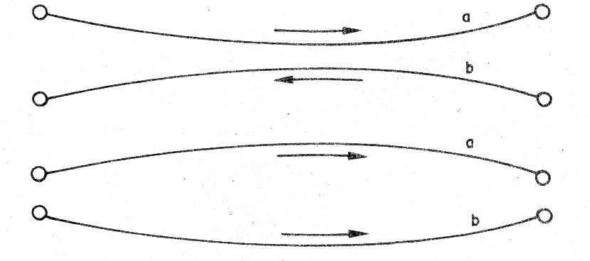 Dos conductores eléctricos paralelos atravesados por la corriente continua crean campos magnéticos alrededor de ellos que interactúan con la aparición de fuerzas de atracción y repulsión. Las fuerzas deben ser atraídas si las corrientes tienen sentidos opuestos de movimiento como se muestra en la figura 1, y repulsión si las corrientes tienen el mismo significado.