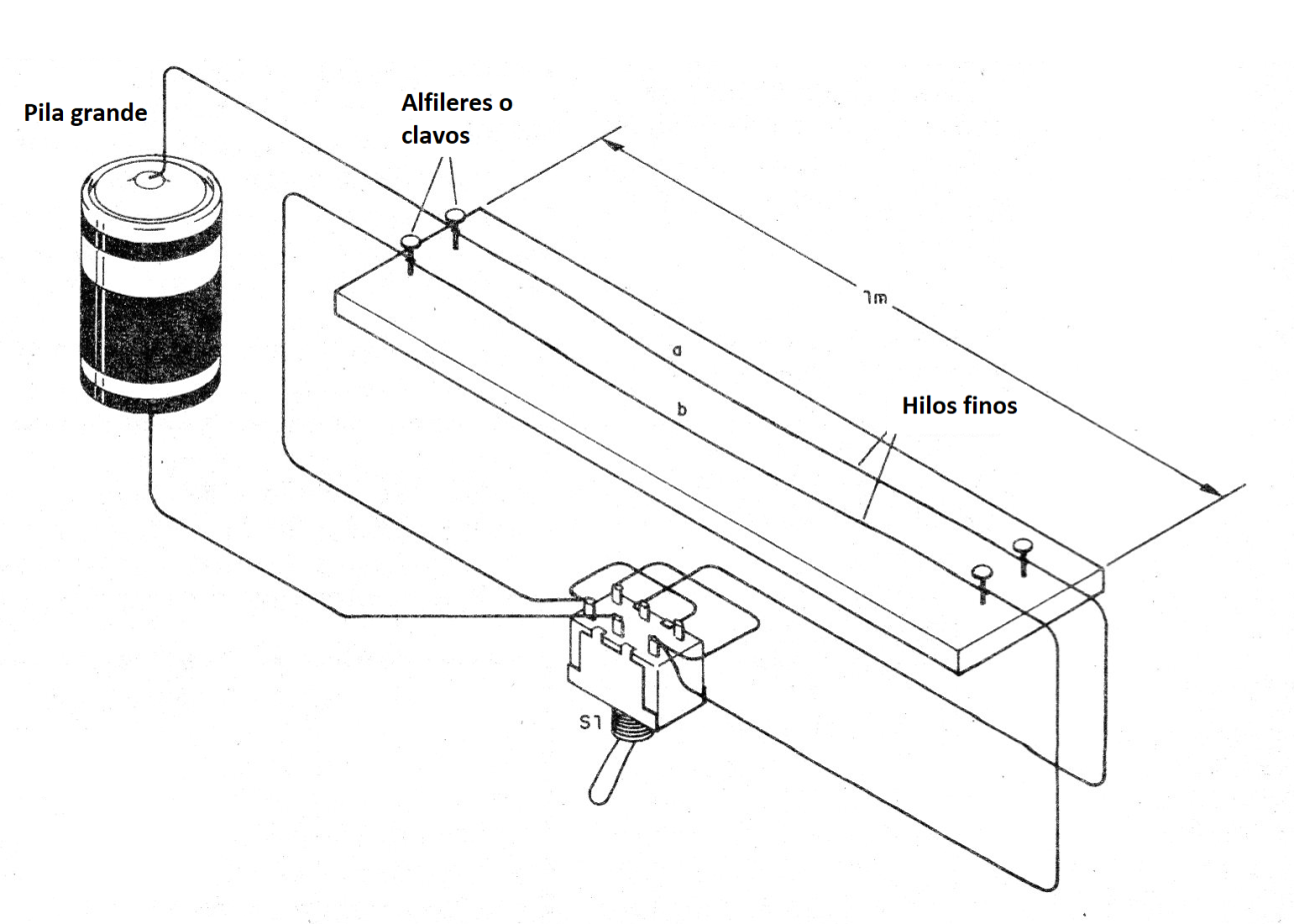 En una base de madera de aproximadamente 1 metro de longitud se fijan 4 clavos donde están prisioneros alambres comunes finos sueltos, pero paralelos. La distancia entre los cables deben ser de la orden 1 a 2 cm, para que el efecto sea fuerte.