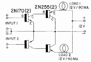 En la figura tenemos un circuito antiguo para controlar dos lámparas de bajo consumo. El circuito es de la revista Radio Electronics de mayo de 1960 y se puede aplicar a LED y utilizar transistores modernos.
