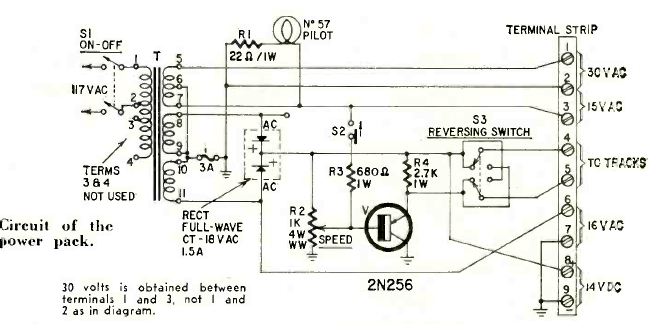 Esta fuente de modelado se encontró en la revista Radio Elecronics de febrero de 1961. El transistor debe recibir calor y el transformador un secundario de 1,5 A.