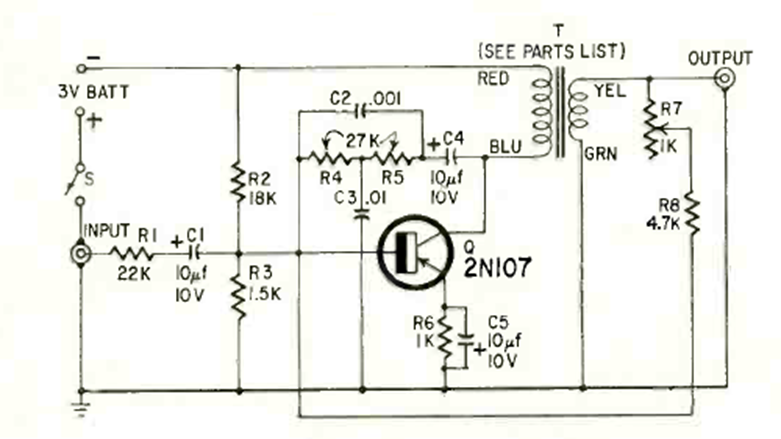 La idea de este circuito la encontramos en una Radio Electrónica de enero de 1966. La idea del circuito es mejorar la recepción de señales de audio, principalmente telegráficas, funcionando como un filtro.