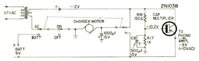 Este circuito de control se encontró en una radioelectrónica de mayo de 1965. El circuito conmuta un registrador a partir de una señal de comando externa.