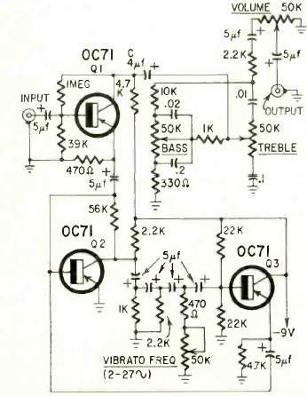 Este circuito de 3 transistores es de una revista de Radio Electronics de mayo de 1963. Los transistores utilizados son del tipo germanio de la época. El transistor tiene varias configuraciones.