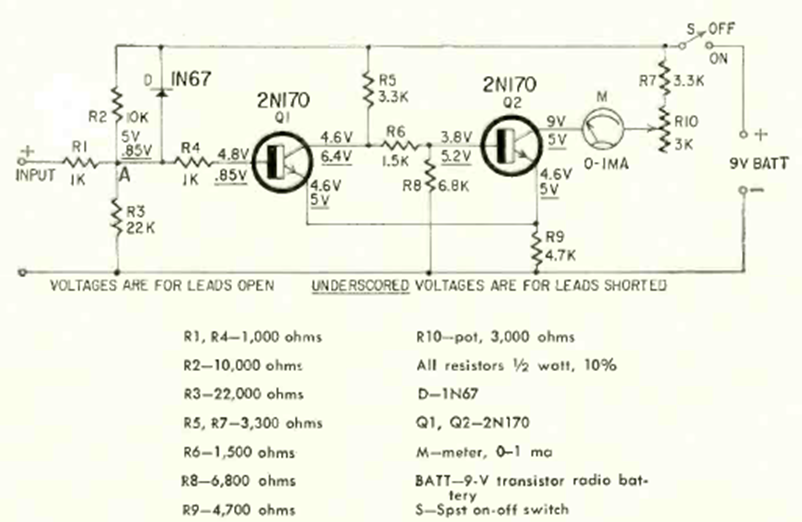 Este antiguo circuito para automóviles platinados se encontró en una publicación de 1963. Los transistores son de la época, pero el circuito se puede implementar con equivalentes modernos. Se puede suministrar un regulador de 9 V que utiliza los 12 V de la batería del coche o incluso un zener con una resistencia de 470 ohms en serie.